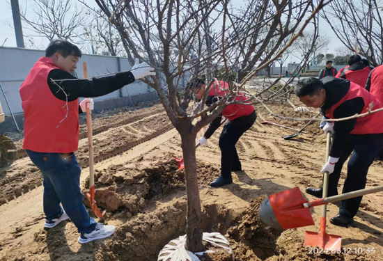 活動現(xiàn)場黨旗飄揚(yáng),黨員干部熱情高漲,揮鍬鏟土、扶樹填土,每個環(huán)節(jié)都銜接有序、一絲不茍,呈現(xiàn)出一片熱火朝天的忙碌景象,展現(xiàn)了黨員干部積極向上的精神風(fēng)貌。在大家的共同努力下,一株株新栽樹苗昂然挺立,錯落有致,煥發(fā)勃勃生機(jī),為園區(qū)增添一片綠色。