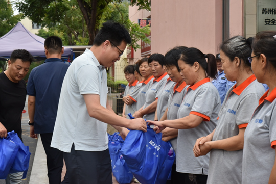 三伏天以來,宿遷地區(qū)氣溫節(jié)節(jié)攀高,連日高溫天氣給一線勞動者帶來了嚴(yán)峻考驗(yàn)。為切實(shí)做好防暑降溫工作,保障一線勞動者的身體健康安全, 8月14日,建發(fā)公司組織開展“一線送清涼”高溫慰問活動。公司副總經(jīng)理倪松、相關(guān)部門負(fù)責(zé)人共同參加了慰問。