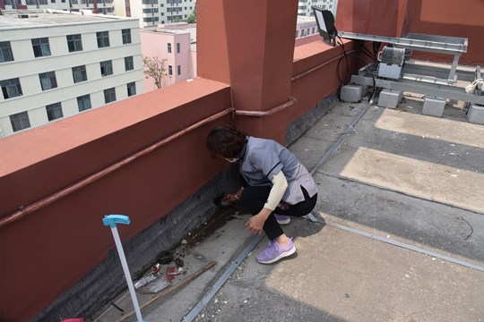 由于雨天泥沙、生活垃圾等雜物極易隨雨水流入雨水篦、排水口導(dǎo)致排水管道堵塞。此次疏通過(guò)程中,通過(guò)對(duì)所有天臺(tái)排水口、地面雨水篦逐個(gè)清淤,積極消除汛期隱患,確保雨季排水暢通。