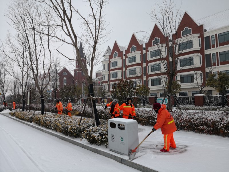 此次掃雪除冰,蘇宿園區(qū)共出動(dòng)環(huán)衛(wèi)工人近200人,城管隊(duì)員4人,其它人員約50人,雪鏟車1輛,平地機(jī)1輛,皮卡車7輛,運(yùn)輸車1輛,融雪劑10噸,人工除雪工具若干。