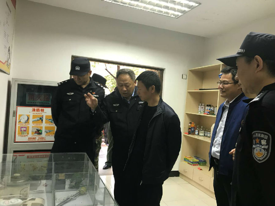 為全力確保十九大期間安全防控形勢,打贏十九大園區(qū)安保攻堅戰(zhàn),10月19日,市公安局副局長陳紅淦、蘇宿工業(yè)園區(qū)公安分局副局長劉勇、蘇宿工業(yè)園區(qū)消防大隊大隊長宗靈明一行率專項督導(dǎo)檢查組到園區(qū)公舍檢查督導(dǎo)十九大消防安全保衛(wèi)工作,建發(fā)公司副總經(jīng)理倪松及其相關(guān)負責同志陪同檢查。