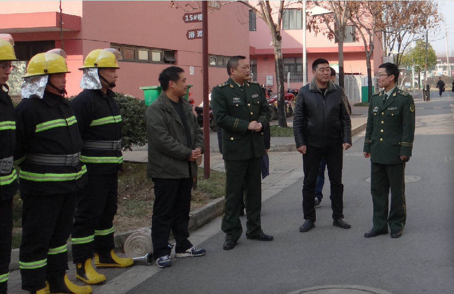 1月16日,宿遷市消防支隊(duì)防火處處長經(jīng)賢華、宿遷市宿城區(qū)消防大隊(duì)大隊(duì)長楊圣林一行人蒞臨園區(qū)公舍,對2016年的消防安全建設(shè)工作做年終考評。