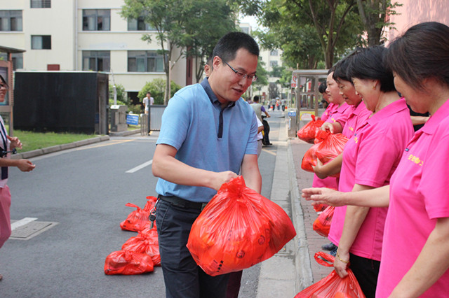 7月28日,建發(fā)公司對奮戰(zhàn)在一線的保安、保潔崗工作人員進行了慰問,給他們送上清涼,送上關(guān)愛。