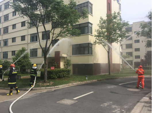 區(qū)域聯(lián)防聯(lián)勤在園區(qū)公舍舉行消防實(shí)戰(zhàn)演練