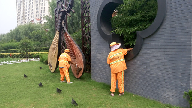 為切實做好園區(qū)創(chuàng)建省級示范道路工作,近日,建發(fā)公司組織環(huán)衛(wèi)工人對青海湖西路沿線的雕塑、景觀小品、景觀燈、柵欄等公共設施展開了全面清潔。