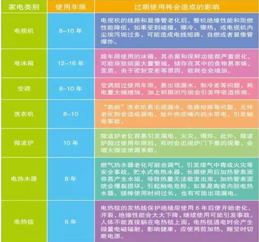 我們平時在購買食物時都會特別注意查看食品的保質(zhì)期,但是您知道家用電器也有“保質(zhì)期”嗎?家用電器都有安全使用年限,在使用時一定要留意。
